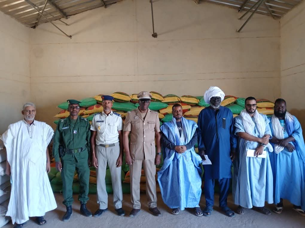 أشرف حاكم مقاطعة تيشيت المساعد، محمدن عمار فال، رفقة المندوب الجهوي لـ مفوضية الأمن الغذائي بولاية تكانت، سَيْ محمدو، اليوم السبت بمدينة تيشيت التاريخية، على انطلاق عملية توزيعات غذائية مجانية لصالح مئات الأسر بالمقاطعة، وذلك ضمن البرنامج الاجتماعي الخاص بشهر رمضان.